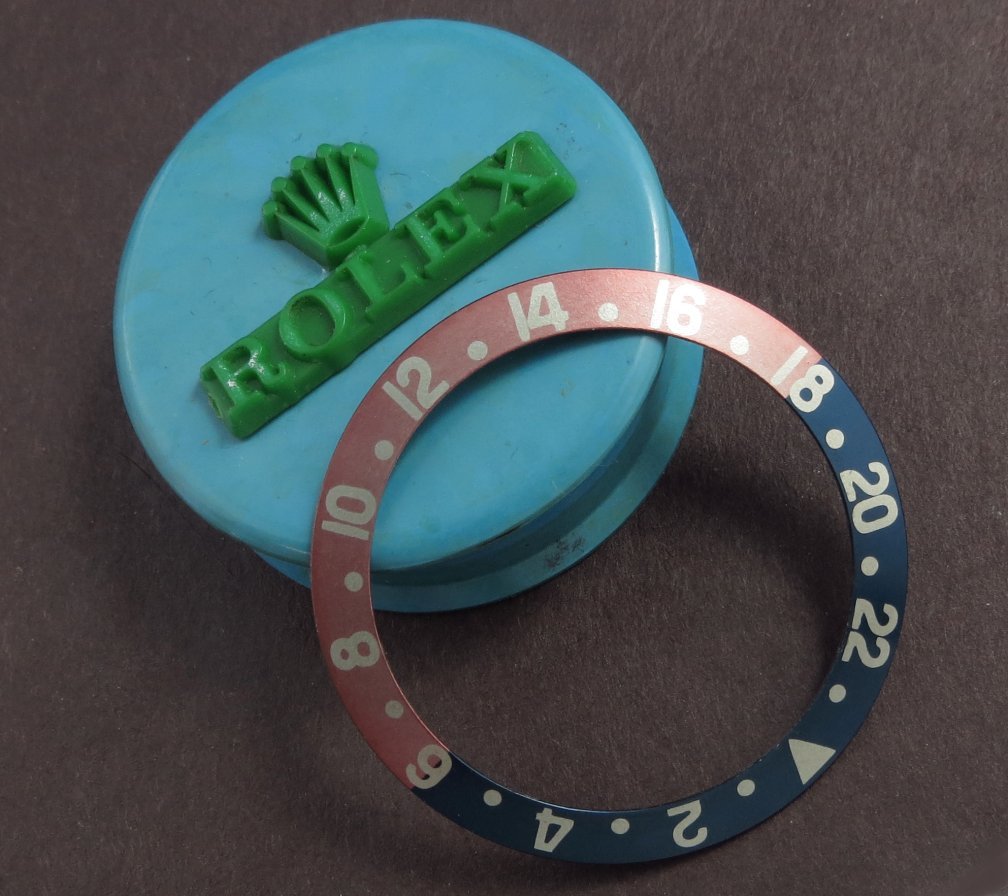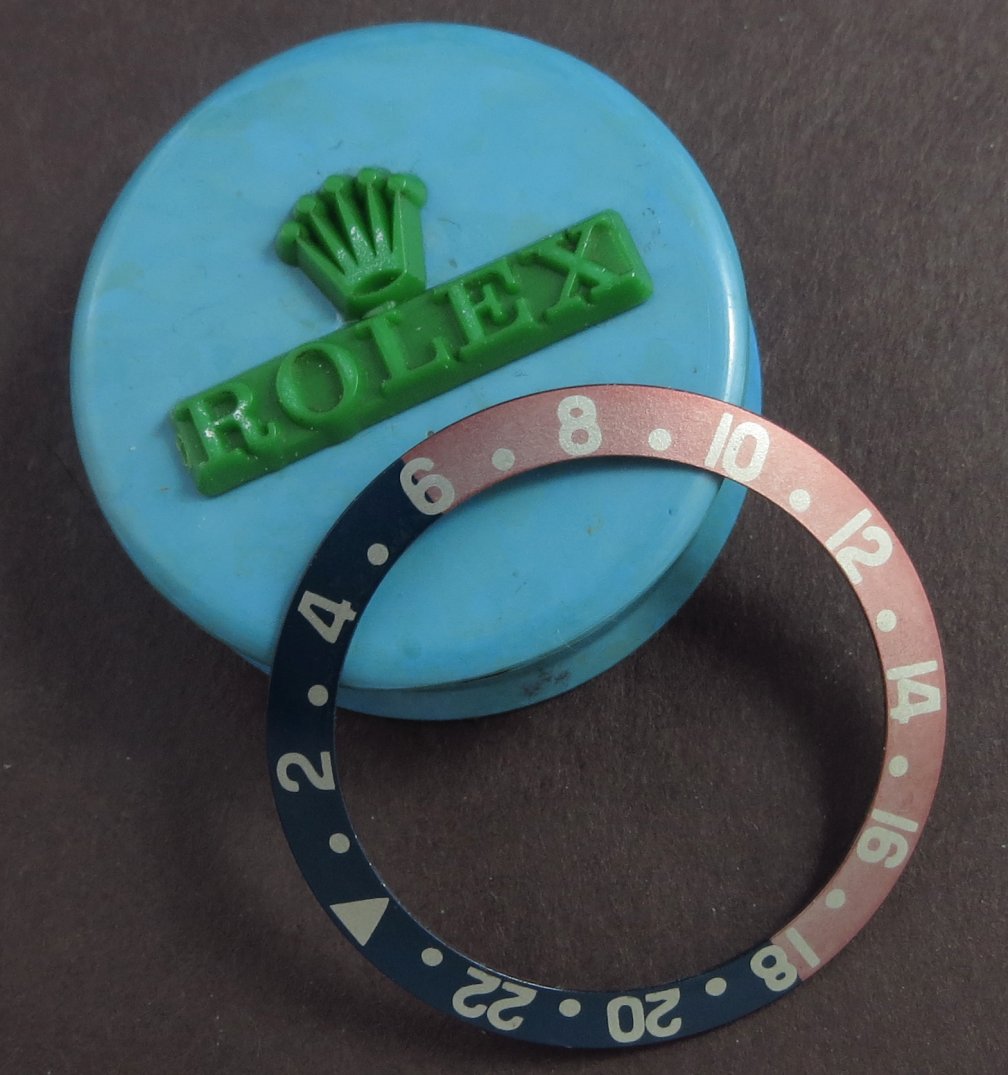 GMT 1675 bezel inserts. (Will also fit the GMT 16750) Both are originals, untouched, not altered or doctored.