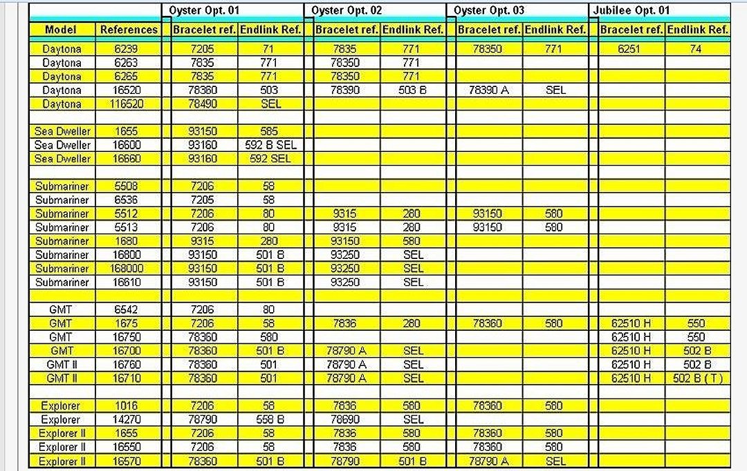 Re: Rolex Clasp codes, Rolex Bracelet codes,End Link number